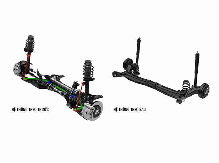 Hệ thống treo trước và sau được tinh chỉnh để mang lại cảm giác lái êm ái, ổn định và bám đường tốt, đồng thời cải thiện độ phản hồi vô-lăng và giữ thăng bằng thân xe khi vào cua.