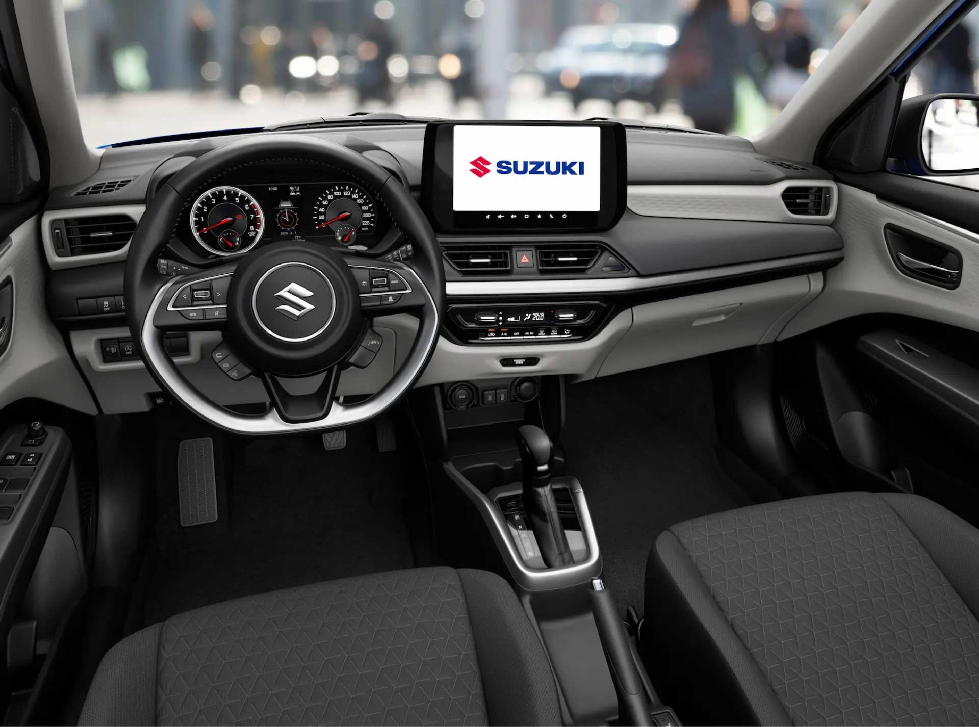 Tất cả các chi tiết trong khoang lái của Swift đều mang đến trải nghiệm cầm lái trọn vẹn, với các nút điều khiển và cụm đồng hồ được bố trí thuận tiện trong tầm tay. Bảng táp-lô và ốp cửa trước hai tông màu được thiết kế liền mạch làm nổi bật phong cách thể thao và đầy cảm xúc.