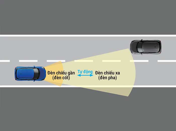 Tự động chuyển pha-cốt tùy theo điều kiện giao thông và ánh sáng, giúp đảm bảo tầm nhìn mà không gây chói cho xe khác. Nếu phát hiện xe phía trước hoặc khu vực sáng đèn, đèn chuyển sang cốt. Nếu đường vắng và tối, hệ thống tự chuyển lại pha.