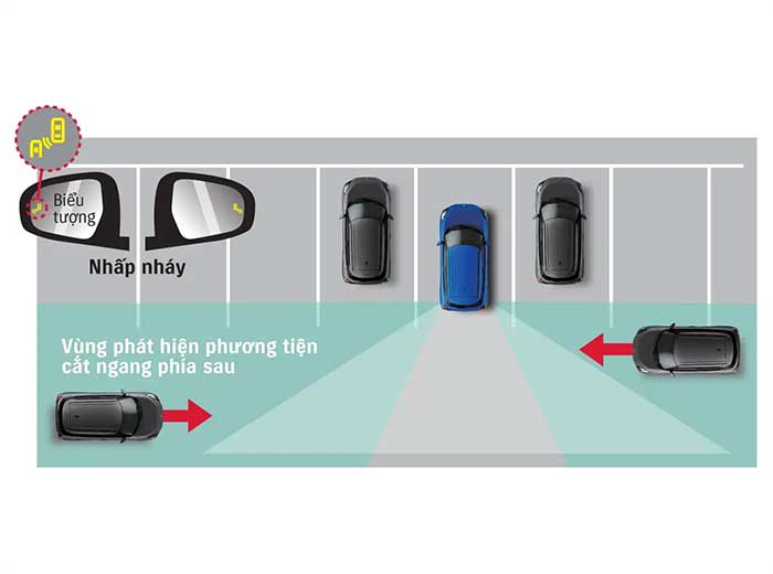 Hệ thống sử dụng radar để phát hiện và cảnh báo phương tiện cắt ngang khi lùi xe, hỗ trợ người lái lùi xe an toàn hơn khỏi bãi đỗ hoặc lối ra gara.