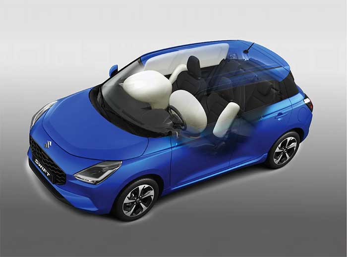 Swift được trang bị 6 túi khí bao gồm túi khí trước, bên hông và rèm dọc hai bên – bảo vệ toàn diện cho người lái và hành khách trong mọi tình huống va chạm, nâng cao sự an tâm trên mỗi hành trình.